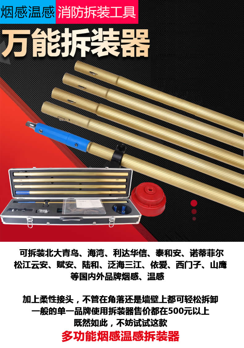 可拆卸北大青鳥、海灣、利達華信、泰和安、諾蒂菲爾、松江、賦安、陸和、泛海三江、依愛、阿波羅、西門子、營口山鷹、核中警、北京獅島、霍尼韋爾、盛賽爾、國泰怡安、金鼎、能美、賽特威爾、奧瑞那、上海金盾、尼特、福賽爾、防威等國內外品牌感煙探測器、感溫探測器、燃氣探測器。